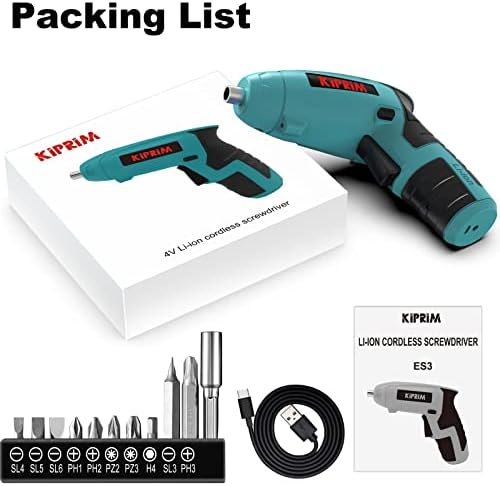 【WARRANTY AND PACKAGE CONTENTS】At Kiprim, we believe in our products. But if you have any questions, we provide a 24-month warranty and lifetime friendly customer service. Package contains 1x ES3 electric screwdriver, 10x bits, 1x bit extension holder, 1xmagnetizer,1 x user manual, 1xUSB cable.