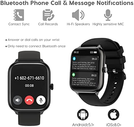 【Important Partners In Life】Smart watch is compatible with smartphones that use iOS 8.0/Android 4.4 or above, and Bluetooth 4.0 or above. It contains many daily useful tools, such asHeart rate and oxygen sleep monitoring,bluetooth call, smart notification, AI voice, breathing training, camera control,music control,sedentary reminders, find phone, alarm clock, stopwatch, weather, Calculators. Bring you more smart experience.