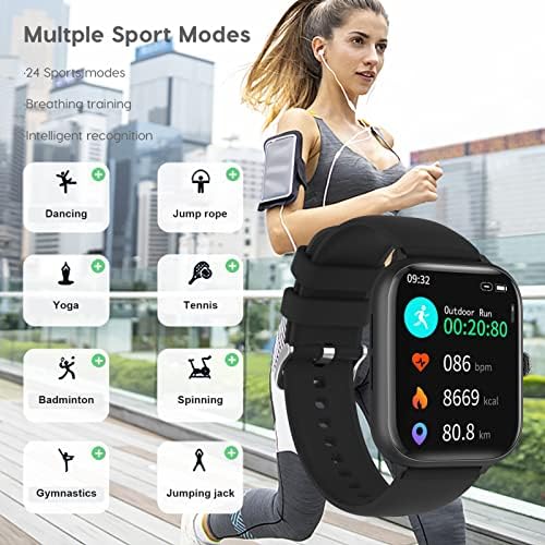 【24 Sports Modes Activity Tracker】The fitness watch has 24 sports modes to meet your various sports styles. You can choose the corresponding mode according to your sports,Includes indoor and outdoor sports (walking, running, skipping, cycling, basketball, football, yoga, etc). During your exercise, it will record your data like steps, calories burned, distance and active hours in real time. You can check fitness data analysis to help you achieve better exercise results.