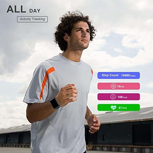 【Tracks Daily Activities】The smart watch with 8 sport modes records your all-day activities, including steps, distance, calories. Plus, sedentary reminder, and other health functions, help achieve total fitness management from your wrist.