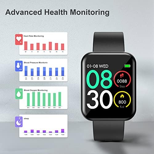 Smart Watch Fitness Tracker with Heart Rate Blood Oxygen Blood Pressure Sleep Monitor 8 Sports Modes Step Calorie Counter Activity Health Trackers IP68 Waterproof for Android Phones iPhone Women Men