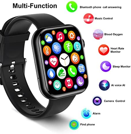 【Multifunctional & Health Monitoring Assistant】Our smart watch for iphone has many functions, such as music playback/control, weather information, camera control, multiple alarm clock watches, stopwatch, watch find, voice assistant, sedentary reminder, etc. The optical sensor on our watch automatically tracks your real-time heart rate, monitors your SpO2 saturation, body temperature, sleep status, provides comprehensive sleep quality analysis, and helps you better understand your health status.