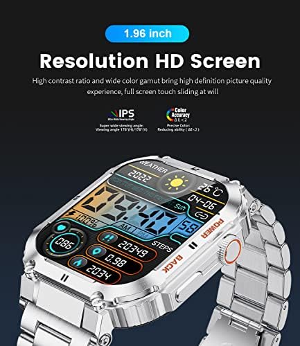 【400mAh Long-lasting Batterry】The military smart watches for men has a 400mAh battery provides a power-packed performance, ensuring usage throughout the day. This high-capacity battery smart watch ensures that it can keeps up with your active lifestyle. Whether you’re monitoring your fitness activities, receiving important notifications, or staying connected with loved ones, from morning workouts to late-night meetings, the extended battery life of this LIGE smart watch will get you covered.