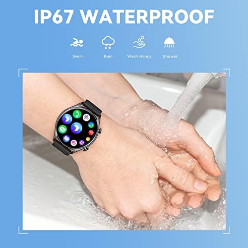 [Battery Life & Water Resistant Attention] – Built-in 280mAh battery, EIGIIS fitness tracker watch for men only takes 2 hours to get fully charged, can be used about 3-5 days (under Bluetooth calling mode). IP67 waterproof fitness smartwatch for men is no problem for washing hands, jogging in rain (BUT NOT SUPPORT take a shower/sauna and swim). If unfortunately the speaker gets water, you can shake the water out and use a blower to air dry the speaker.