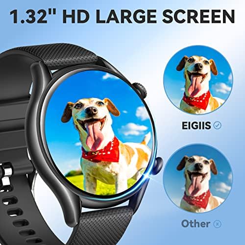 [Clear, Bright 1.32″ HD Screen & More] – Compared with the same type of smartwatches on the market, EIGIIS men smart watch for android phone is equipped with 1.32″ HD full touch screen, highly sensitive, more bright, clear and smooth to control! Moreover, it has multiple functions (such as shortcut, night light mode, remote camera, play music, stopwatch, intelligent voice assistant etc), is the perfect gift choice for family, friends etc.