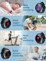 Health Data Monitoring: The fitness tracker smartwatch is capable of monitoring various aspects of your health, including heart rate, blood pressure, and blood oxygen levels. It will alert you when your heart rate is too high or irregular. For adults, deep sleep typically lasts between 72 and 120 minutes, and the watch provides sleep monitoring, tracking deep and light sleep to assess your sleep quality.