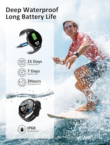 Waterproof & Battery Life: With an IP68 waterproof rating, the fitness watch can withstand sweat and is designed to enhance your daily life. It offers a battery life of approximately 7 days, with slight variations depending on individual usage. Charging takes approximately 2 hours to reach full capacity.