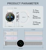 ALL-ROUND HEALTH MONITORING: This women smart watch can detect your 24/7 heart rate, blood pressure and blood oxygen to get a better understanding of your health (Not for medical use). The high-performance motion sensor monitors sleep status automatically and provides comprehensive sleep quality analysis (deep sleep, light sleep and awake). You can also use the Female Physiological Cycle, Drink Reminder and Sedentary Reminder features to help you make reasonable adjustment on your lifestyle.