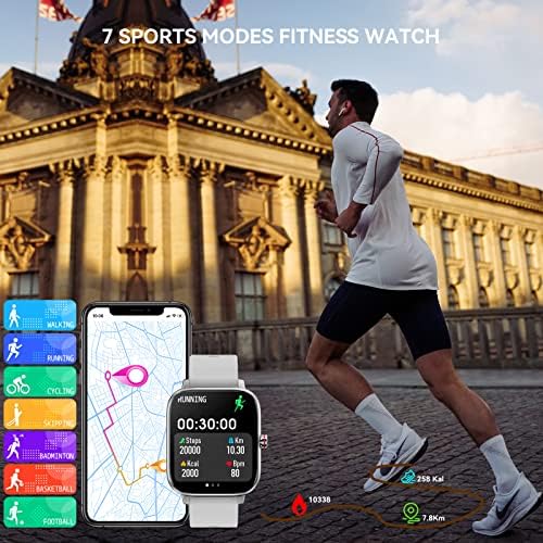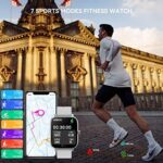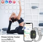 【 Activity Tracker Fitness Watch for Men Women】-This step counter watch supports 7 types of fitness trackers, such as Walking, Running, Cycling, Skipping, Badminton, Basketball, and Football. Recording your steps, distance, calories, etc activity data. Detailed record data can be viewed on the “Dafit” app, to help you achieve your fitness goals, a great fitness partner for you! (Note: this watch is not for swimming or soaking in water.)
