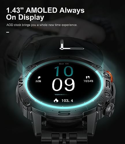 Smart Watches for Men Military with Big AMOLED Touchscreen Always on Display Large Capacity Battery Answer/Make Calls IP68 Waterproof Heart Rate Blood Pressure Step Fitness Tracker Men's Smartwatch