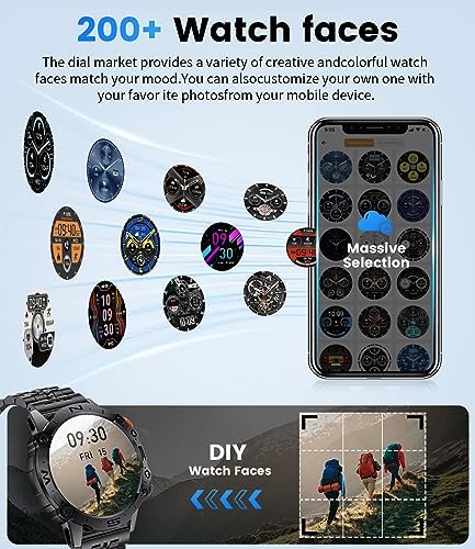 【DIY & 100+ Watch Faces】With 100+ stylish HD wallpapers to choose from, this mens smart watch lets you customize the watch face to suit your style and personality. It also offers the possibility to create watch faces yourself using your own photos. Every time you glance at your wrist, it reminds you of the moments and people that matter to you. The big IPS touch screen ensures vivid colors, sharp details, enhancing your visual experience even further.(Support App_FitCloudPro)
