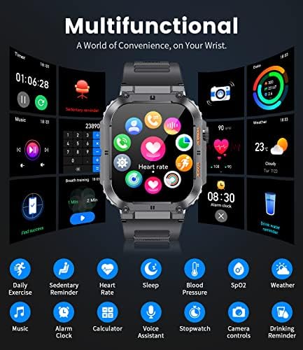 【400mAh Long-lasting Batterry】The military smart watches for men has a 400mAh battery provides a power-packed performance, ensuring usage throughout the day. This high-capacity battery smart watch ensures that it can keeps up with your active lifestyle. Whether you’re monitoring your fitness activities, receiving important notifications, or staying connected with loved ones, from morning workouts to late-night meetings, the extended battery life of this lige smart watch will get you covered.
