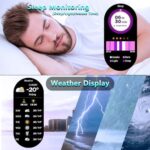 Daily Health Monitoring: The smart watch can monitor your heart rate 24/7, and can also monitor your blood oxygen and sleep. Understand your sleep quality through your wake-up time, light sleep, and deep sleep to help you make reasonable adjustments. You can also set sedentary reminders and drinking water reminders.