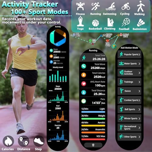 Fitness Partner: The smart sports watch supports more than 120 sports modes, meets indoor and outdoor sports recording needs, and accurately records steps, distance, calories and other all-day sports. You can read the data intuitively and obtain good fitness results.