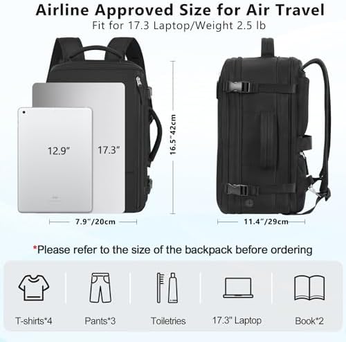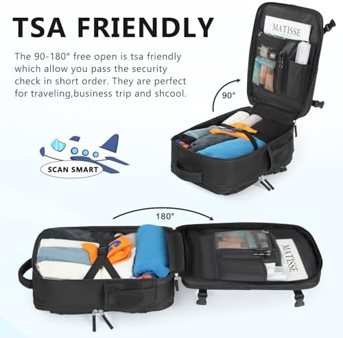 【As Personal Items Approved by Most Airlnies】The carry on backpack measures 16.53 x 11.41 x 7.87 inches(L x W x D) and weights 2.5 pounds(1.14 kg). It meets airline personal-item requirements. The 90-180° free open is tsa friendly which allow you pass the security check in short order. They are perfect for traveling, business trip and shcool.