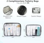【2 Complimentary Toiletry Bags】The package comes with two waterproof clear bags, measuring 8.07 x 5.91 x 2.36 inches and 6.69 x 4.72 x 2.36 inches. The clear bag stores the washing articles neatly and cleanly and has the advantages of convenient use and portability.