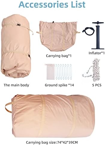 –To prevent the tent’s inflatable tube and other parts from being punctured by sharp objects and causing a leak, it is recommended to use it in a flat area.