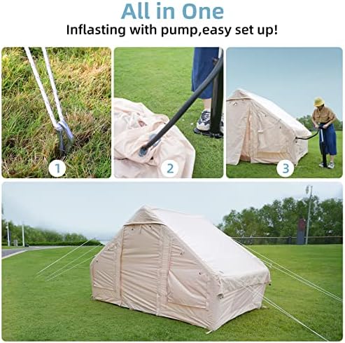 Our SOLAISK inflatable glamping tent because of specially treated, its thickened fabrics that can protect you from UV-resistant.