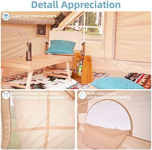 🏕️【Convenient Unique Design Inflatable Night Club】This glamping tent design with screen window for enhanced breathability. This air tent has 2 doors for easy entry and exit, and its large section mesh windows can increase airflow mobility.