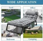 [Sturdy and Durable]: The Adjustable fold cot up lounge chair is made of durable 1200D oxford fabric and sturdy 0.9mm ellipse tube that can last for a long time. It can hold up to 400LBS. The cot provides optimal relaxation and support to you with ergonomic design.