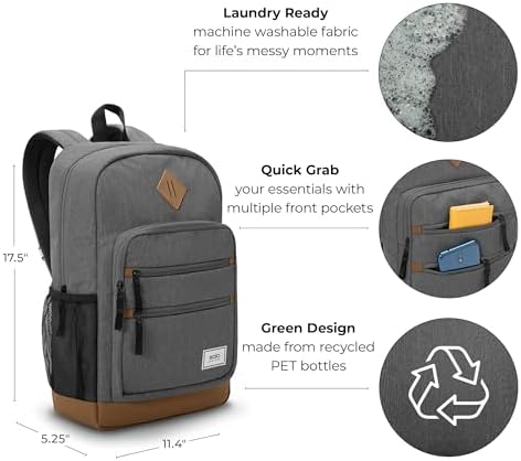 Home Luggage & Travel Accessories Solo New York Re:Fresh Machine Washable Backpack, Grey, Fits Up to 15.6″ Laptop
