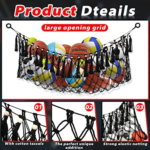 Function of Storage: the storage net is a capable storage helper, it can not only help you store various of balls and sports equipment, but also your plush toys, helmets, gloves, hats and more, which could save space for you