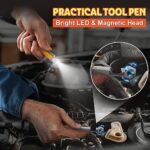 🖋️【11-In-1 Multi-Tool Pen】This tool pen is equipped with 11 functions to help you deal with the problems of everyday life as quickly as possible. These functions include bright LED light, bubble level, centimeter/inch ruler, bottle opener/phone holder, magnet Head, bubble level, flat head and Phillips screwdriver bit, stylus pen, ballpoint pen, and 13mm hex. This cool gadget is perfect for woodworkers, engineers, carpenters, construction workers, and DIYers.