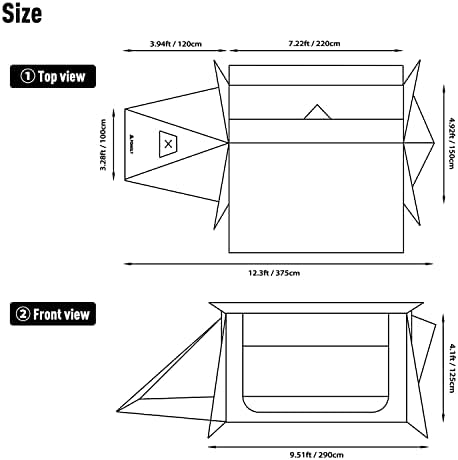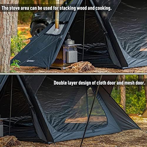 Capacity 1-2P with wood stove Stove Jack DIY heat resisting Snow Skirt No snow skirts Doors 3 Doors Tent Fabric PU 70D Ripstop Polyester Waterproof Rating 2500mm, Heat Taped Waterproof Seaming Floor Shape Irregular Sleeping Area 35.5 sq ft / 3.3 sq m Peak Height 4.1 feet / 125 cm Weight (Without Poles) 7.7 lb /3.5 kg Ventilation Bottom Controllable Vent Packed Size (L*W*D) 53x20x20 cm / 21×7.9×7.9 in Color Black Season 4 Season (Especially in winter)