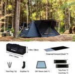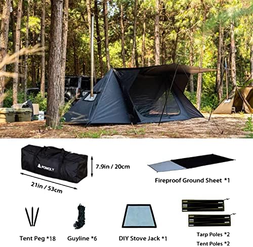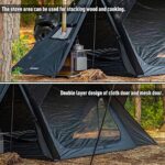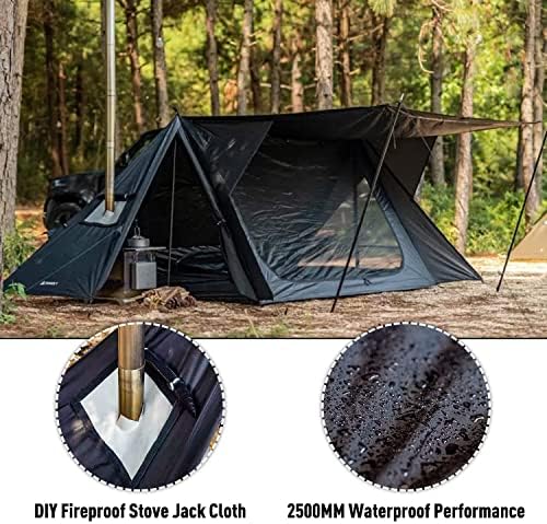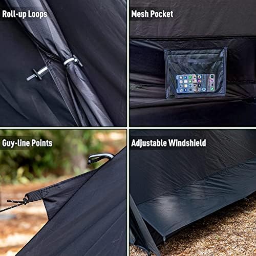 Backer Shelter Style – 4 Season Ultralight Buchcraft shelter for Survivalists.Easy Setup – Using two walking poles or paracord to set up.Fabric – 70D Ripstop Polyester Fabric with PU 2500mm Waterproof Rating.DIY Stove Jack – You can make the stovepipe cross through the DIY stove jack cloth and use a wood stove in the tent.