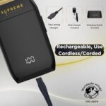 【CORDED OR CORDLESS USE】: 150 Mins of Continued Cordless use with our long lasting Li-ion Battery on a single charge (3 x longer than Competitors). A hidden Display shows your battery percentage! You may use the Product Corded if needed. Receive a Wall Charger, Charging stand & USB Charger good for Traveling worldwide. (100-240V)