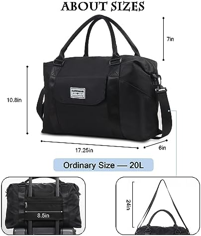 LARGE CAPACITY TRAVEL BAG: The weekend travel bag has multiple pockets and compartments for organizing your belongings, spacious enough to hold the essentials for a 3-5 day trip, easy to put in your clothes, toiletries, shoes, laptop ipad, headphones, U-shaped pillow and other items.