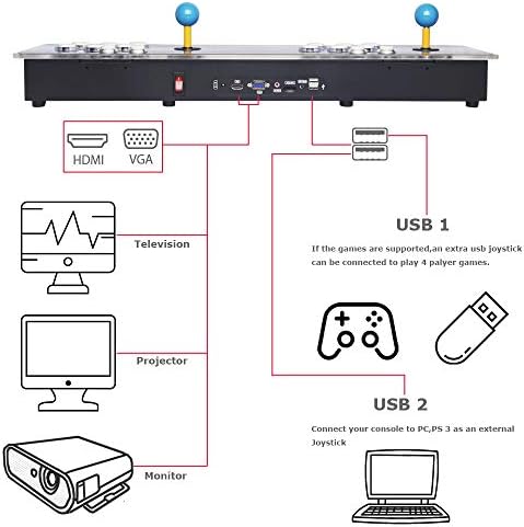 🎮Multiplayer Gaming Fun: Get ready for multiplayer excitement with dual controllers, perfect for playing with friends or family in cooperative or competitive gameplay. With games for 1-4 players, you can enjoy multiplayer gaming sessions and create memorable experiences with the Pandora Box Arcade Console, a multiplayer arcade console.