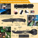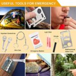 【Professional Tactical Gear & Camping Essentials】This is a professional emergency kit, it contains various practical survival gear and camping accessories: glow stick, survival bracelet , emergency blanket, flashlight, wire saw, fire starter, 7 in 1 spoon and fork, bottle hanging buckle, multifunctional card, whistle, parachute cord, screw driver, fishing kit. Just the right Christmas gifts for men who likes camping hiking car travel climbing boating, outdoor adventure, etc.