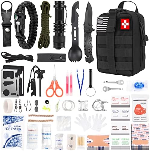 【Durable & Portable】 All the camping gear in our survival kits are of high quality and durable. And all these survival gear and equipment are neatly arranged in a 600D nylon molle pouch measuring 9 inches x 6 inches x 5 inches. Lightweight and easy to carry, can be placed in cars, bicycles, motorcycles, ships, etc. Cool stocking stuffers for men who like outdoor activities, perfect companion outdoor for them.