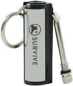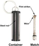 SMALL AND EASY TO CARRY. Mini portable size: 2.4 x 0.75 x 0.63 inches, weighs 0.5 oz. Tiny, put it in your pocket for EDC, every day carry. Lightweight, water proof, weatherproof, windproof, storm proof, sparks in wind while wet or cold in all types of weather. The key chain is easy to throw on your key ring, lanyard, in your car or backpack with your gear for a day hike or backpacking.