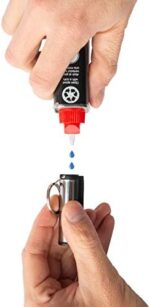 QUALITY DURABLE CONSTRUCTION. The container housing is made from tough black ABS plastic and silver stainless steel. Reusable and refillable canister. Perma long endless life, will last 15,000 strikes. Magnesium steal alloy flint rod. Liquid fuel is sold separately. Be sure to purchase Ronson or Ronsonol lighter fluid (light petroleum distillate) separately. Includes cotton wicks and keyring.