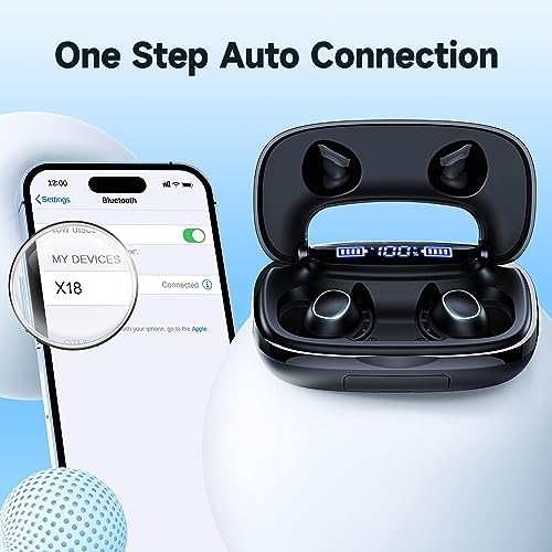 Auto Connection and Bluetooth 5.3: Our X18 bluetooth wireless earphones are designed with a hall switch, enabling automatic connection when the case is opened. Once initially connected, both earbuds will remember your device and automatically reconnect when the case is opened again. With the latest bluetooth 5.3 technology, our X18 wireless earbuds swiftly and reliably transmit device signals, ensuring seamless music playback and call quality without any delay or signal degradation.