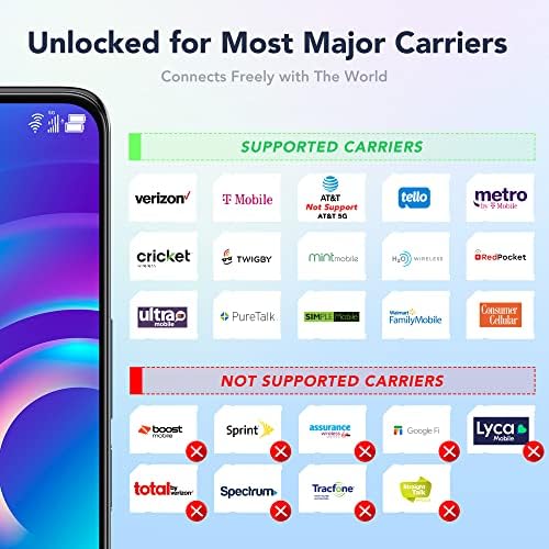 Wireless carrier: TCL 30 5G supports Verizon, T-Mobile, and AT&T (AT&T 5G not supported) networks. Not compatible with CDMA networks (such as Spectrum, Boost, Xfinity, etc.). Carrier list: Metro And T-mobile sim card, simple, Cricket, Ultra Mobile, H2O, Viaero wireless, Viya, Cspire, Tello, Twigby, Consumer Cellular, PureTalk, RedPocket*More carrier info please check with us.
