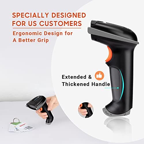The orange anti shock silicone protective cover can prevent scratches and friction even when dropped from up to 6.56 feet. IP54 technology protects the wireless barcode scanner from dust.