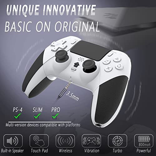 Built-in speaker and stereo headset jack, allowing you to experience your favorite games in a whole new dimension.Share button that lets you live-stream your game without pausing your session.The center multitouch pad can extend your gaming possibilities.BT 5.0 with stable wireless connection with no delays, lags, or interruptions.Conform to palm structure even if you use it for a long time , you won’t feel tired.Advanced Gaming Buttons to replace L3/R3The dual analog sticks and trigger buttons have minimal lag and increased sensitivity, for a superior accuracy in movements.