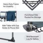 Extra Storage Space: Functional side table with build-in cup holder and phone slot keeps your belongs close to you. This lawn chair is also featured with a side pocket, a great organizer for beverages, keys, phone, and glasses.