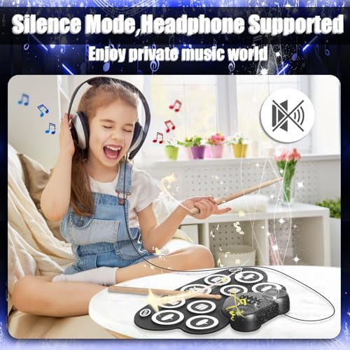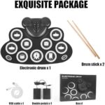🚋【Drumming On The Way】The electronic drum pad is made of high-quality soft silicone, which can reduce the noise when drumming. Enjoy your own music world with 3.5mm jack headphone . If you wanna take it outdoors ?jut roll it up, and pack it in your bag.