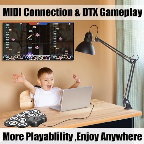 🎮【MIDI Connect & Gameplay】It is easy to connect the electric drum to computers to produce music or play DTX games, or connect external speakers for family entertainment/birthday parties. Perfect for adults who need MIDI functionality and children for entertainment.