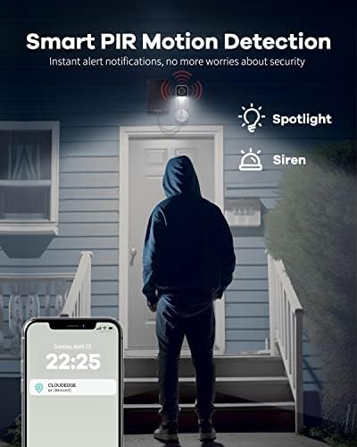 【2K Ultra HD Resolution & 40FT Color Night Vision】The security camera provide a visual experience of up to 2K. The camera can capture clear color video at night and has a night vision range of up to 40 ft, even in the dark. You can set the spotlight to automatically turn on at night when motion is detected, thus providing HD color night vision, so you can see the details anytime.