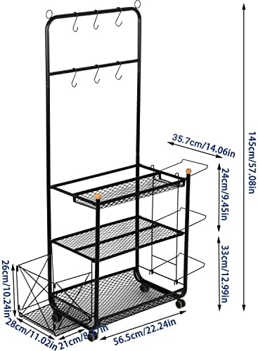 Material: Iron with surface painting Size of Overall product: 38.77″ L x 11.02″ W x 57.08″ H What’s you get: 1 x Sports Equipment Rack (Assemble required) 1 x Instruction Manual