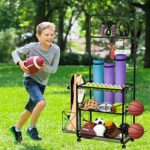 Price: (as of – Details) Our 4-tier movable ball rack is the perfect solution for sports enthusiasts who need a