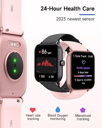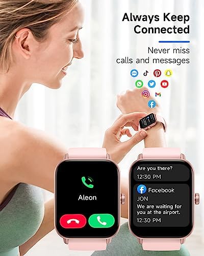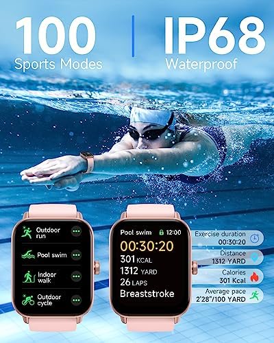 Health monitoring & Fitness Tracking: The smart watch can monitor your heart rate, blood oxygen, and stress levels in real-time, and alert you if anything is abnormal. With over 100 different sports modes, the fitness tracker allows you to easily track your steps, calories burned, distance, speed. With maximum waterproof rating(IP68), the watch is also perfect for swimming.