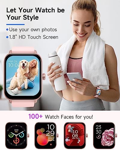 1.8” HD Screen & Customizable Watch Face: Boasting a stunning 1.8” HD full touch screen. With a plenty of gorgeous watch faces to choose from, as well as the ability to ustomize it by uploading your own photo, our smart watches for men&women offers the ultimate in style and versatility.
