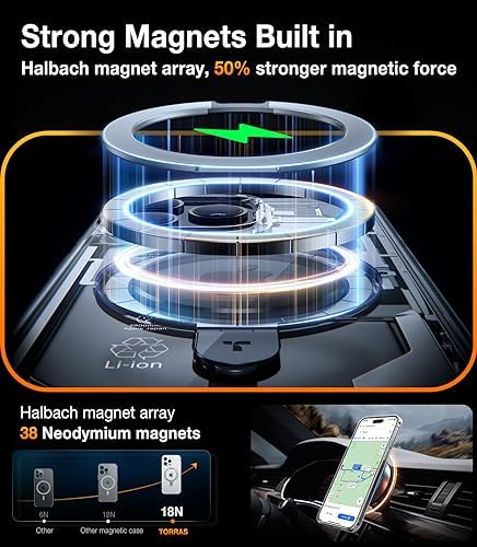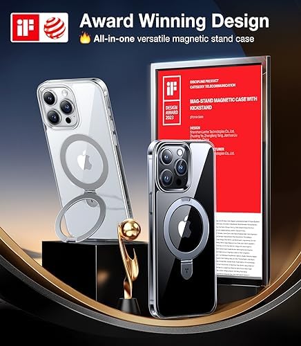 Home Electronics Smartphone TORRAS Magnetic Shockproof for iPhone 15 Pro Case with Built-in Stand [Compatible with MagSafe] [12FT Military Drop Protection] Sturdy Kickstand Slim Protective for 15 Pro Phone Case, Crystal Clear