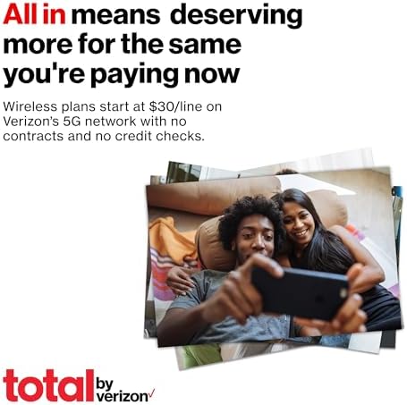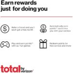Get a smartphone with all the features you’re looking for at a great price with the G100 from Total by Verizon. Play games, watch movies and view brilliant pictures with a 6.5-inch HD+ LCD display and dynamic Android 12 operating system featuring a fingerprint scanner for added security. Capture photos and record videos like a pro with a triple rear 13MP camera and take all your photos and videos with you, no matter where you go, with 32GB of internal storage. Get a premium wireless experience without the premium price tag or costly long-term contracts with Unlimited talk, text & high-speed data plans from Total by Verizon that start at just $30/mo for a single line. Access the fastest speeds with Verizon and enjoy special perks like hotspot capability, international long-distance calling, and exclusive discounts, everything on the network America relies on. **Supports up to 512 GB microSD card, microSD cards sold separately. Content with DRM restrictions may not be able to be moved to the card. Plan Matrix and Rewards disclaimers: *Refer to the latest Terms and Conditions of Service at Total by Verizon Website. At 2G Speeds, the functionality of some data applications, such as streaming audio or video may be affected. If congested, customers may notice reduced speeds vs carrier postpaid customers. ‡ Refer to the latest Terms and Conditions of Service at Total by Verizon Website. If congested, customers may notice reduced speeds vs carrier postpaid customers. 5G access requires a 5G-capable device in a 5G coverage area. ≈The $50 Plan can use up to 10GB of non-sharable data per line for hotspot usage. Once 10GB Hotspot allotment has been exhausted, hotspot cannot be used until next plan cycle. Hotspot is only available on compatible 4G LTE and 5G devices. ≈The $60 Plan can use up to 20GB of non-sharable data per line for hotspot usage. Once 20GB Hotspot allotment has been exhausted, hotspot cannot be used until next plan cycle. Hotspot is only available on compatible 4G LTE and 5G devices. ≈Multi-Line Plans can use up to 10GB of non-sharable data per line for hotspot usage. Once 10GB Hotspot allotment has been exhausted for a line, hotspot cannot be used until next plan cycle. Hotspot is only available on compatible 4G LTE and 5G devices. ≈ The $30 and $40 plans can use their entire high speed data allotment for hotspot usage counted against existing high speed data allotment. Once high speed data allotment has been exhausted, hotspot cannot be used until next plan cycle. Hotspot is only available on compatible 4G LTE and 5G devices. ◊Unlimited Calls available to up to 15 unique international landline and mobile numbers in Canada and Mexico only, which reset each time a new plan is redeemed. Calls must originate from the US or Puerto Rico. No international roaming allowed. For personal use only. Other terms and conditions apply. ◊◊Unlimited Calls available to up to 5 countries of your choice, which reset each time a new plan is redeemed. International long distance service is available to select countries only, which are subject to change at any time. Calls must originate from the US or Puerto Rico. Roaming in Canada and Mexico only. For personal use only. Other terms and conditions apply. ◊◊◊Unlimited Calls available to 69 countries. International long distance service is available to select countries only, which are subject to change at any time. Calls must originate from the US or Puerto Rico. No international roaming allowed. For personal use only. Other terms and conditions apply. † Requires active service on Total by Verizon $60 Plan. You must remain on eligible Plan to retain Disney+ offer. Must be 18+. Total By Verizon reserves the right to cancel or modify this offer at any time. One offer per eligible Total by Verizon account. Standard Data usage applies when accessing Disney. See additional terms at Total by Verizon Website © 2023 Disney and its related entities. † $50, $85, $120, and $150 plan: Disney+ for up to 6 months from time of activation with Disney. Only available with active service for 6 consecutive months on $50, $85, $120 and $150 plans; your Disney+ promotional subscription will end on your Total by Verizon service end date and any remaining time in your promotional subscription will be lost. $60 plan: Disney+ included requires active service on $60 plan; you must remain on the eligible plan to retain Disney+ offer. Both offers: must be 18+. Total by Verizon reserves the right to cancel or modify this offer at any time. One promotion per Total by Verizon account. Standard data usage applies when accessing Disney+. See additional terms at Total by Verizon Website © 2023 Disney and its related entities **Reward Points can only be applied towards an eligible Total by Verizon plan when you accumulate the total amount of points needed. Reward Points have no cash value and cannot be transferred to another customer. Additional terms and conditions apply. Please refer always to the latest Terms and Conditions of Service at Total by Verizon Website.